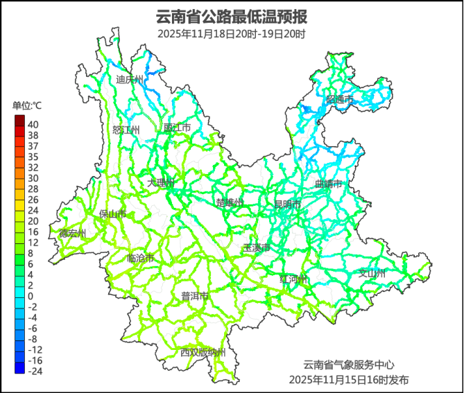 11月18日20时至11月19日20时受强降温影响的路段为: