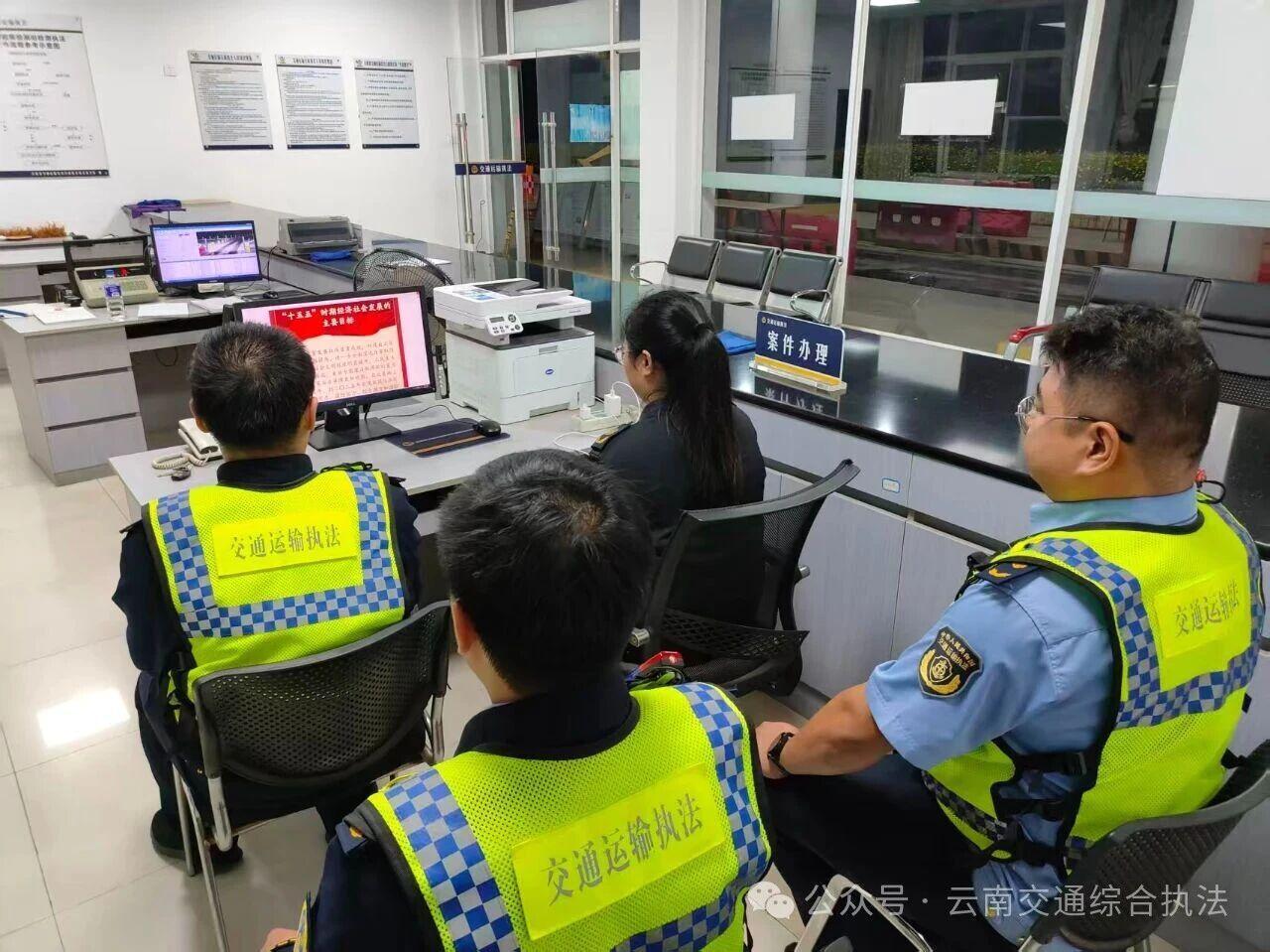 德宏支队制定分阶段学习计划,近期开展专题学习会5场次。组织团员青年在“百吨王”治理专项行动夜间巡查、卡点值守等任务中锻炼成长,各大队学用结合打造实践载体,推动全会精神在交通执法一线实践落地。