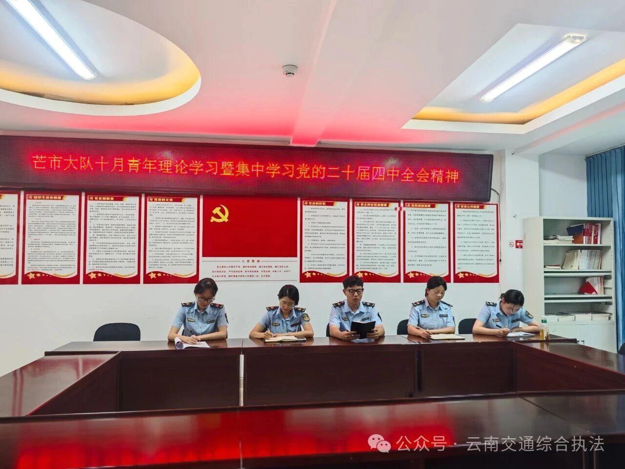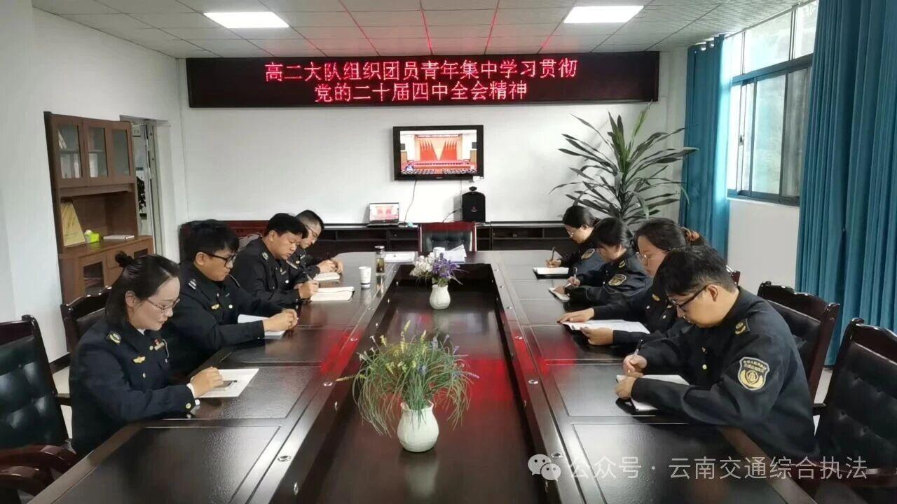 大理支队采用“会前自学+团委领学+交流研讨+总结汇报”方式深学细悟全会精神。号召支队团员青年发挥自身优势,研究破解传统执法难题,自觉把个人发展融入交通执法事业。
