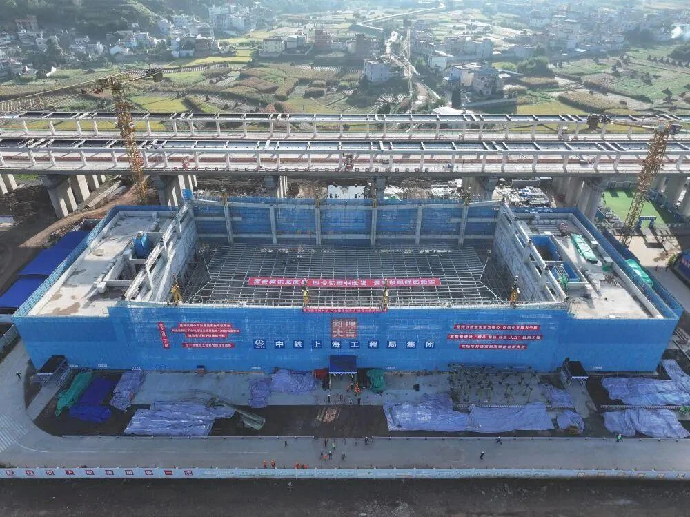 渝昆高铁云贵段会泽站站房实现全面封顶