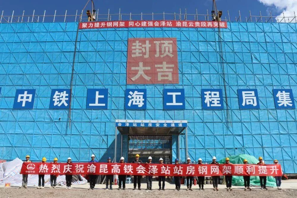 10月10日,由中铁上海工程局承建的渝昆高铁云贵段站房二标会泽站站房实现全面封顶。