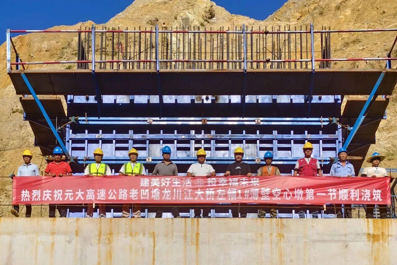 10月13日,元大高速公路项目控制性工程——老凹塘龙川江大桥左幅1#薄壁空心墩第一节完成浇筑。
