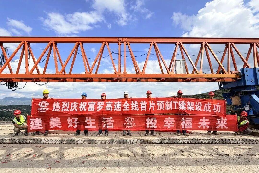 10月10日,富罗高速公路项目杨二冲大桥首片T梁稳稳落于桥墩,标志全线首片预制T梁完成架设任务。