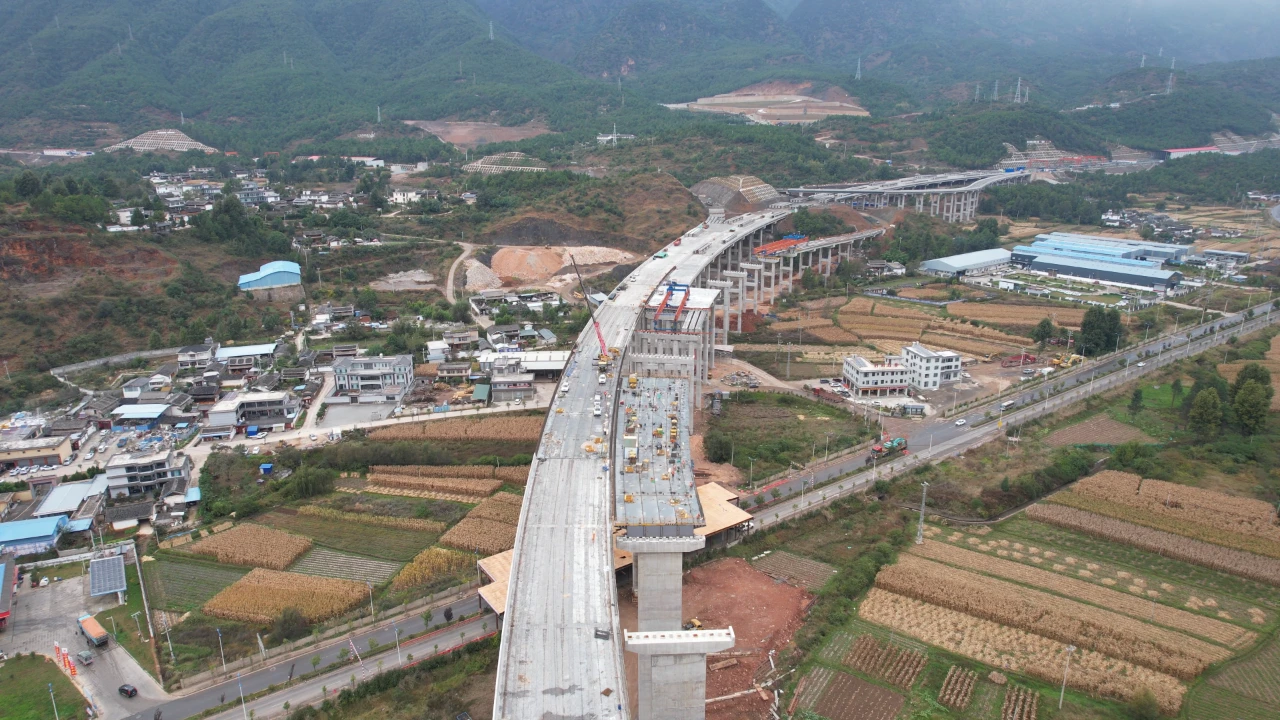 11月10日上午,澄华高速公路华宁南枢纽互通桥梁全部架设完成,华宁南互通转入桥面及路面施工阶段。