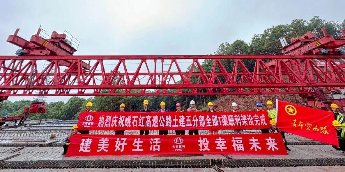 11月9日,峨石红高速(玉溪段)土建五分部预制T梁全部架设完成,标志着项目主线全面贯通。