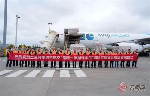 11月18日,昆明长水机场至土耳其伊斯坦布尔定期国际货运航线成功开通。