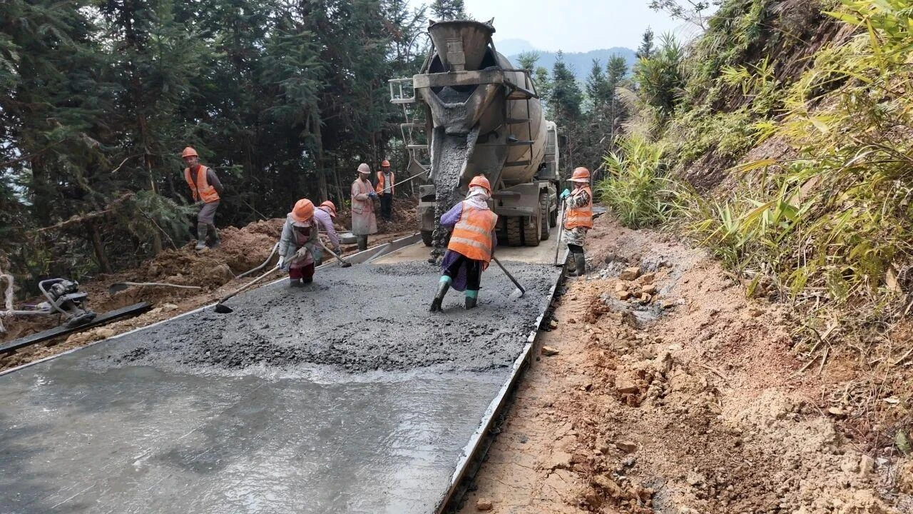 近日,归朝镇里马行政村安各小组至平乐小组的道路硬化施工现场一派繁忙:工人忙着挡板支护、混凝土摊铺,振捣棒轰鸣作业,压路机来回压实路面,已浇筑的路段正进行打磨切缝。这条承载着沿线村民期盼的道路,将于本月底全面竣工,届时将彻底终结当地群众“出行难”的历史,让山里的农产品更便捷地运往市场。