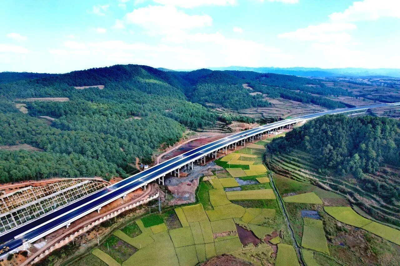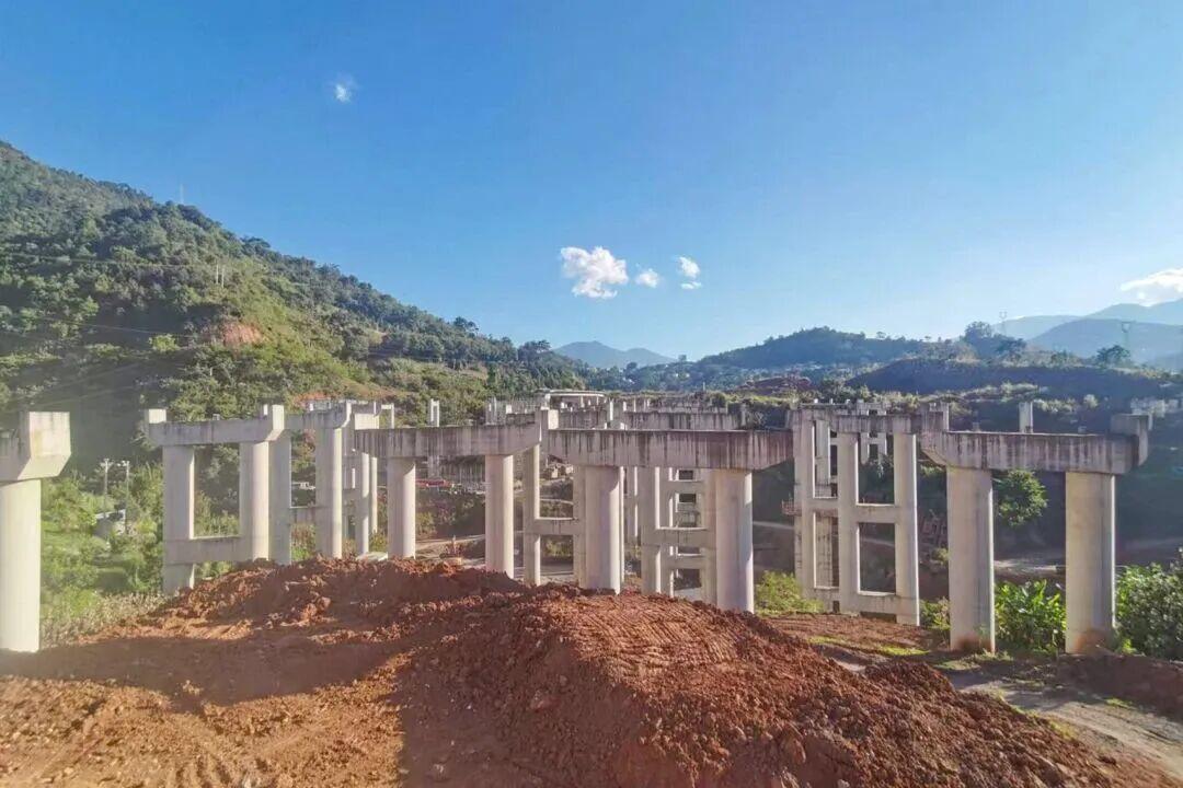 那兴高速位于文山州境内,路线全长57公里,共设桥梁70座,隧道16座,互通式立交5处,服务区1处,停车区1处,全线桥隧比62.41%。截至目前,项目路基工程完成99%、桥梁工程完成99%、隧道工程完成99%,绿化、房建、路面、机电、交安工程正同步推进。