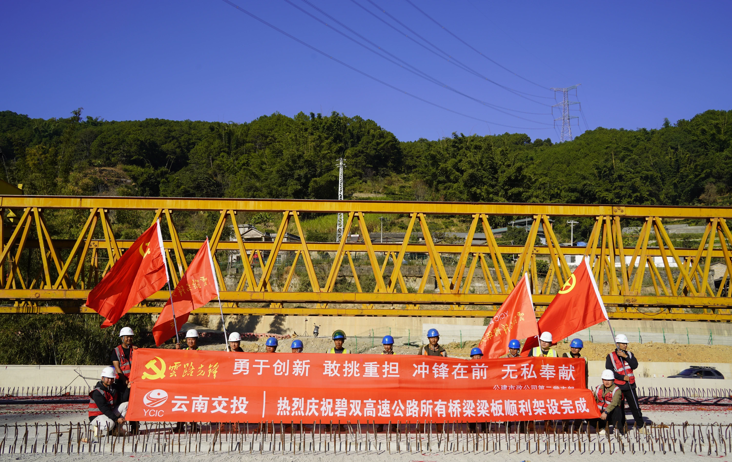 12月10日,随着墨江枢纽主线4号桥最后一片梁板精准落位,碧双高速公路主线梁板架设工程宣告顺利完成,标志着项目建设取得阶段性进展,项目建设进入最后冲刺阶段。