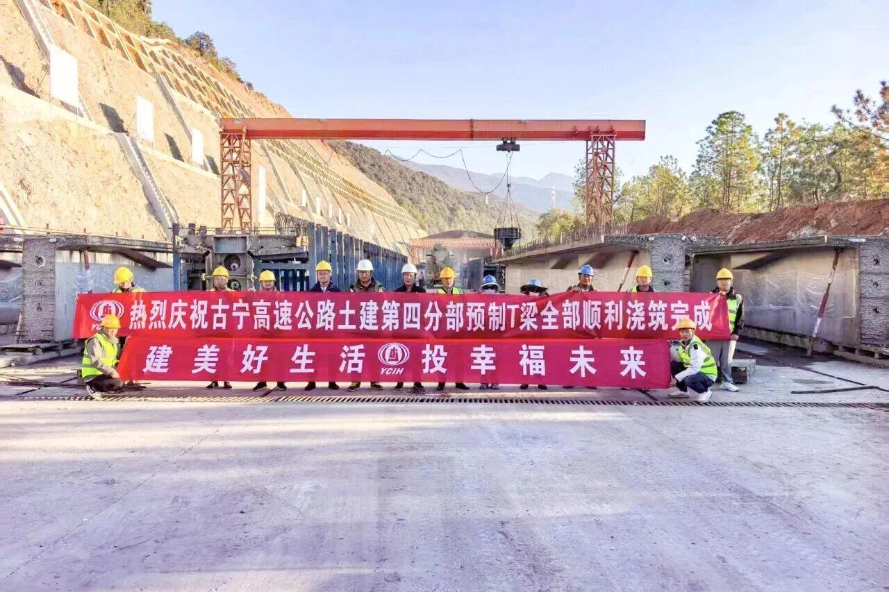 近日,随着土建四分部达瓦大桥8-5#T梁顺利浇筑,丽江古宁高速公路项目先行建设段3633片T梁历时603天全部预制完成。