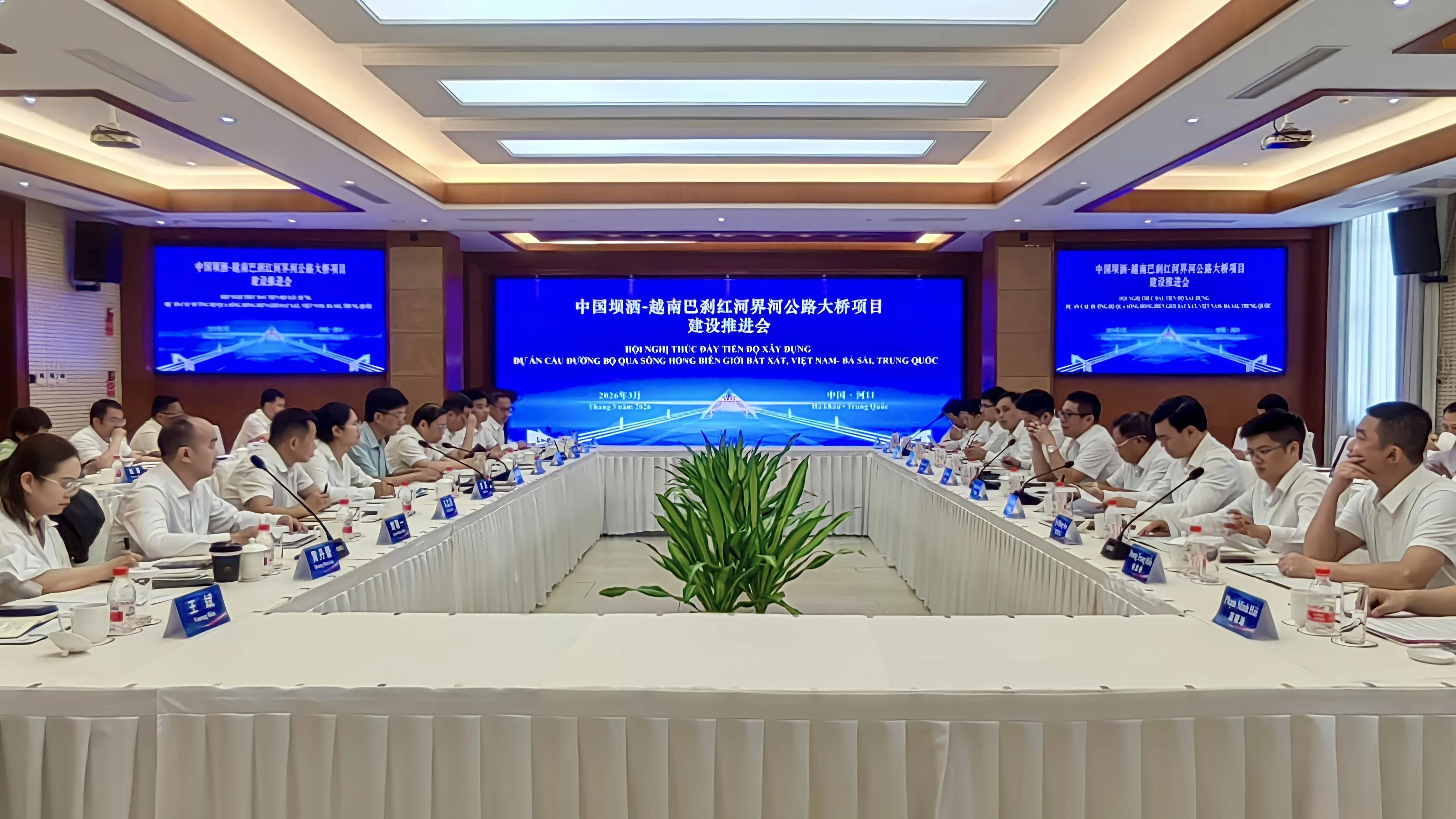 3月31日下午,中国坝洒—越南巴刹红河界河公路大桥项目建设推进会在中国云南省河口县举行。会议由中国足球盘 副厅长杨泽龙主持,越南老街省建设厅副厅长胡高凯率团参会。中越双方相关部门代表及建设单位负责人出席会议,共商项目建设大计,共促跨境交通合作发展。