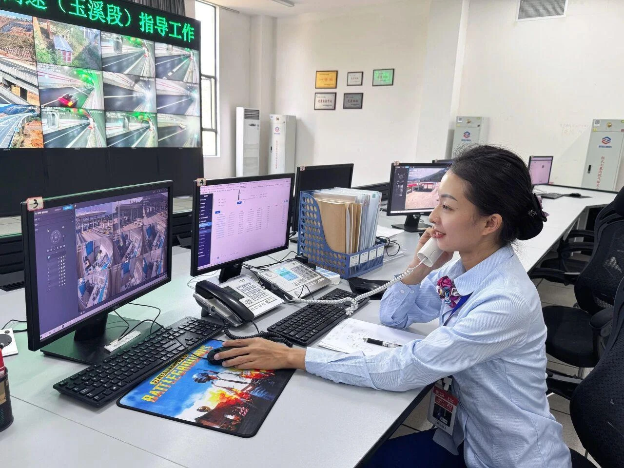 ▲元蔓高速玉溪段监控中心24小时实时关注路况