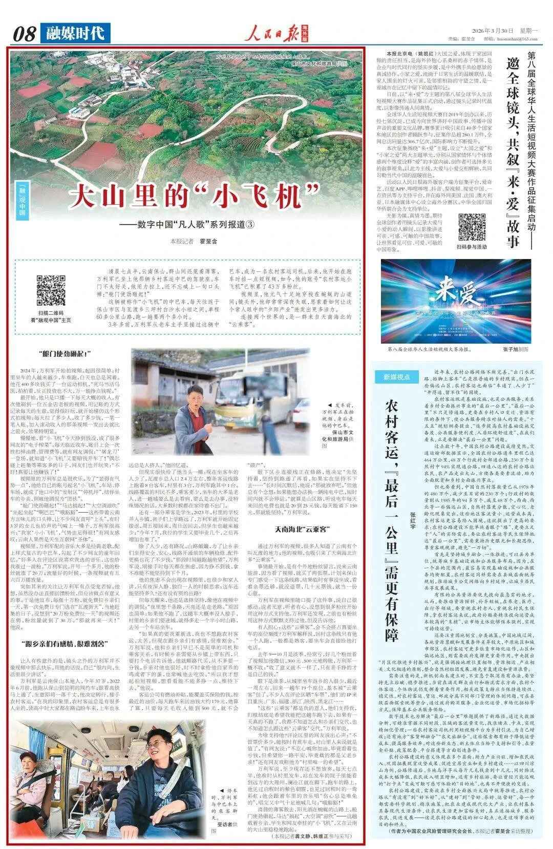 人民日报海外版点赞云南保山农村客运司机万利军