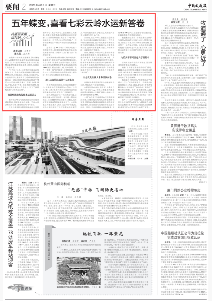 中国交通报丨五年蝶变,喜看七彩云岭水运新答卷