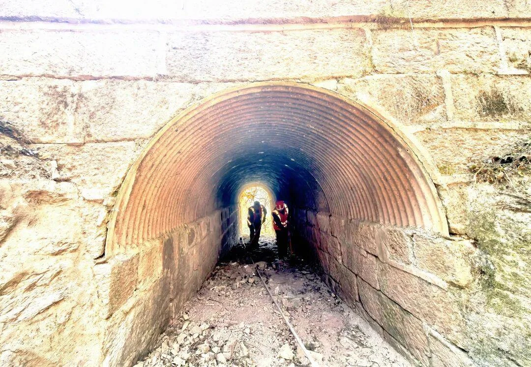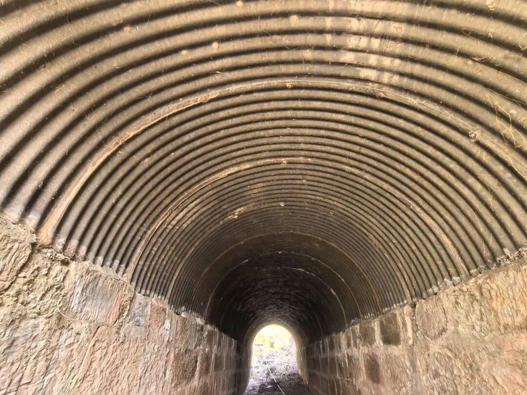 八十余载时光流转,战火的硝烟早已散去,这些钢波涵洞却依旧屹立。如今走近看,大部分涵洞的管节镀锌层依旧清晰可辨,结构整体完好,排水功能也基本正常,唯有少数因山区地质沉降、长期水流冲刷,出现局部锈蚀、接口渗漏的小问题。