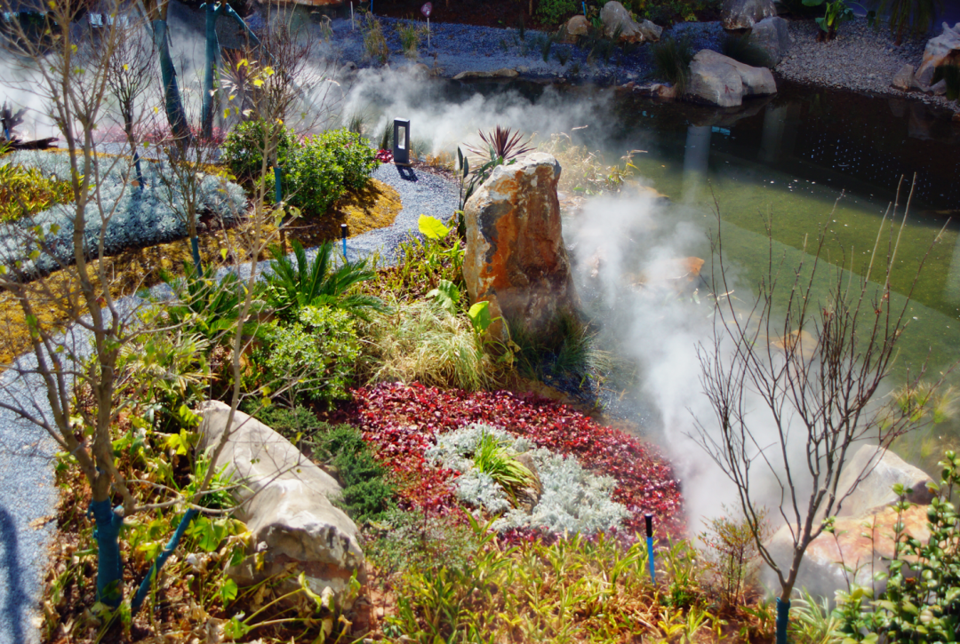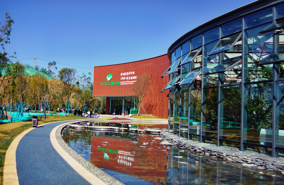 在室外展示区,可以看到滇中地区特有植物大观园,这里精心打造出了楚雄典型植被林、旱生植物群落、岩石植物群落、杜鹃群落等不同类型的环境形态,并运用山、水、石、木等意象,在现代建筑中营造出中国传统园林气息。