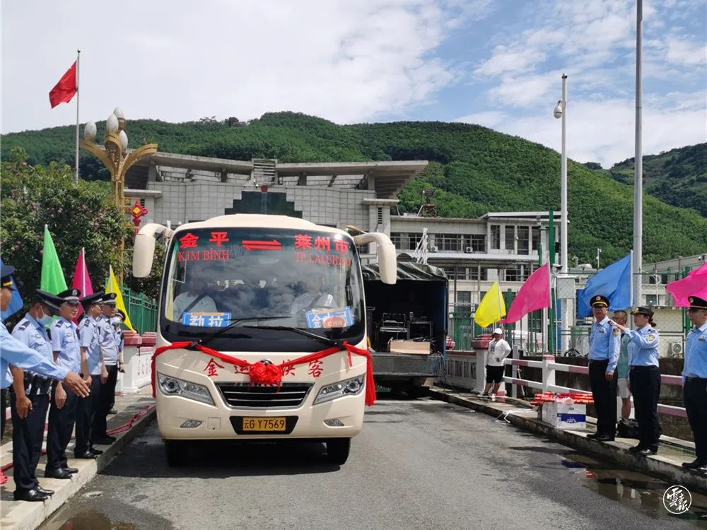 6月13日上午,中国金平至越南莱州国际道路客运班线首批28名乘客从金水河口岸出境,经马鹿塘口岸后到达越南莱州市,标志着“中国金平-越南莱州”国际道路客运班线正式开通。