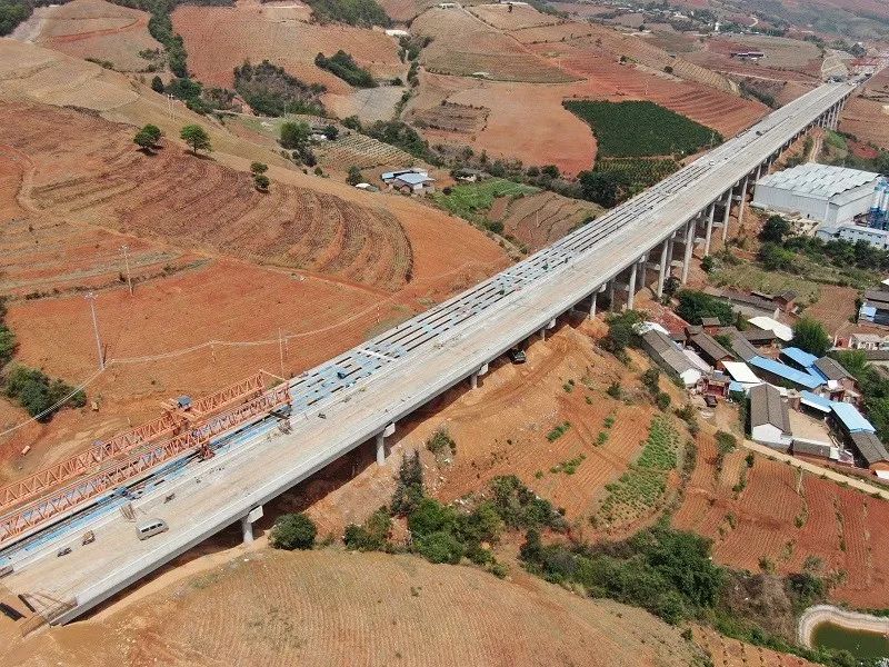 6月16日,宾鹤高速土建四工区伍勒2号大桥梁板架设完成,实现贯通。