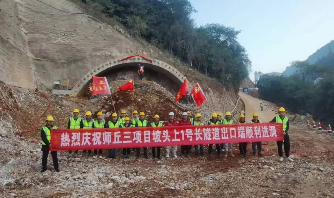 师丘项目坡头上1号长隧道出口端左幅顺利进洞