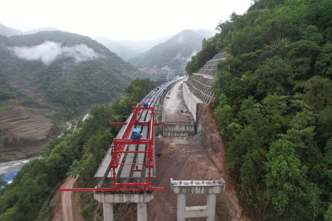 同日,随着永不落2号特大桥最后一片T型梁板精准就位,由瑞孟高速第四总承包部第三项目部承建的永不落至中课段790片T型梁板全部安装完成,瑞孟高速永不落至中课段设计建设桥梁全长5648米(按单幅计)。
